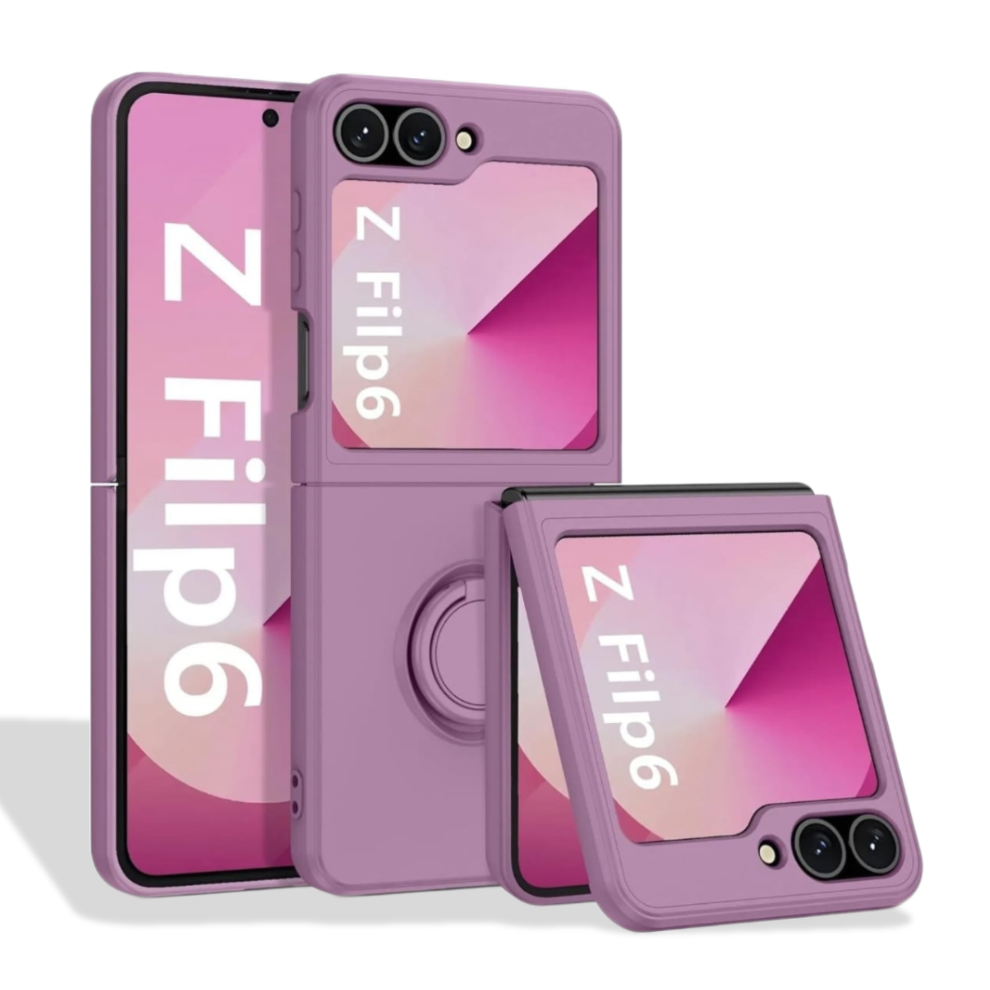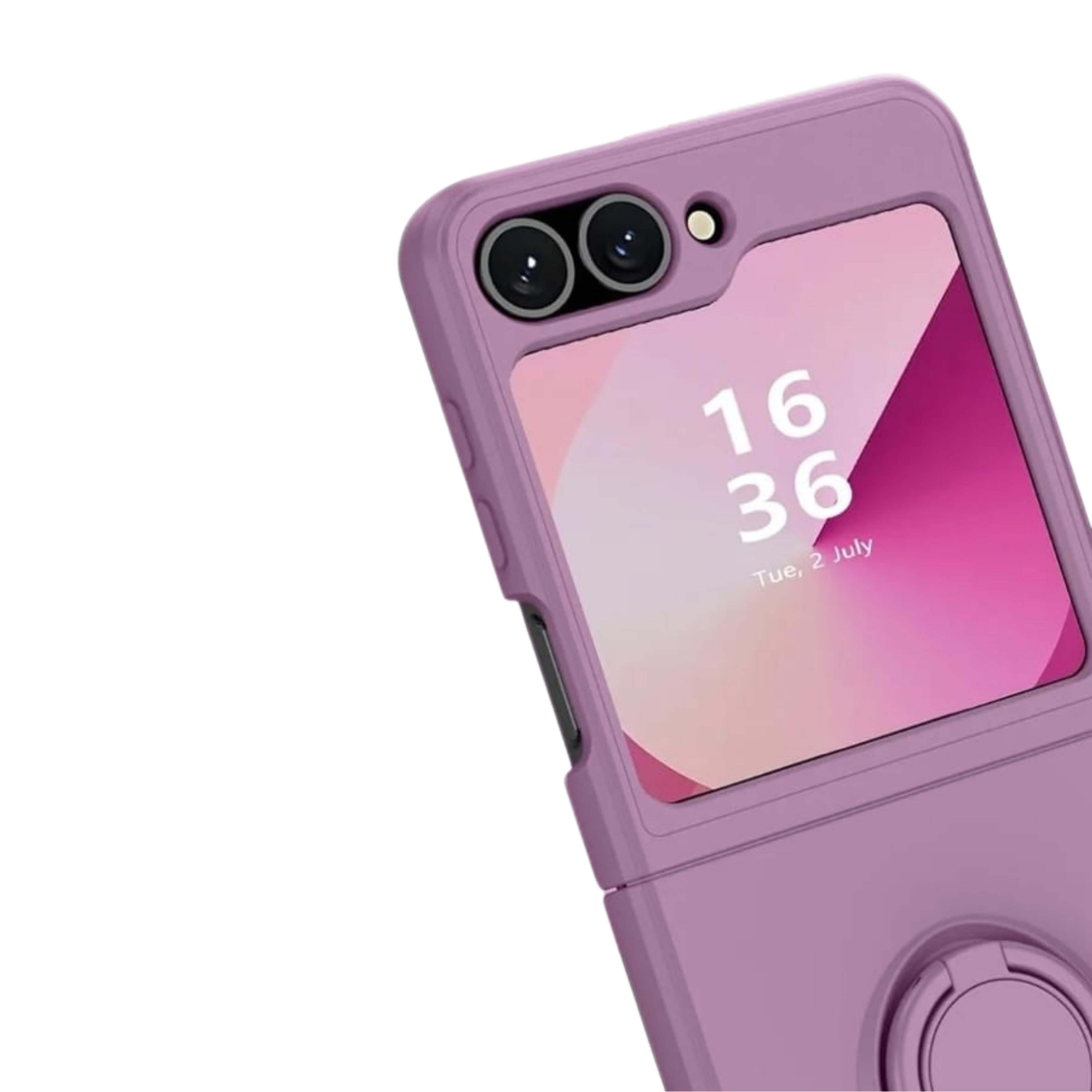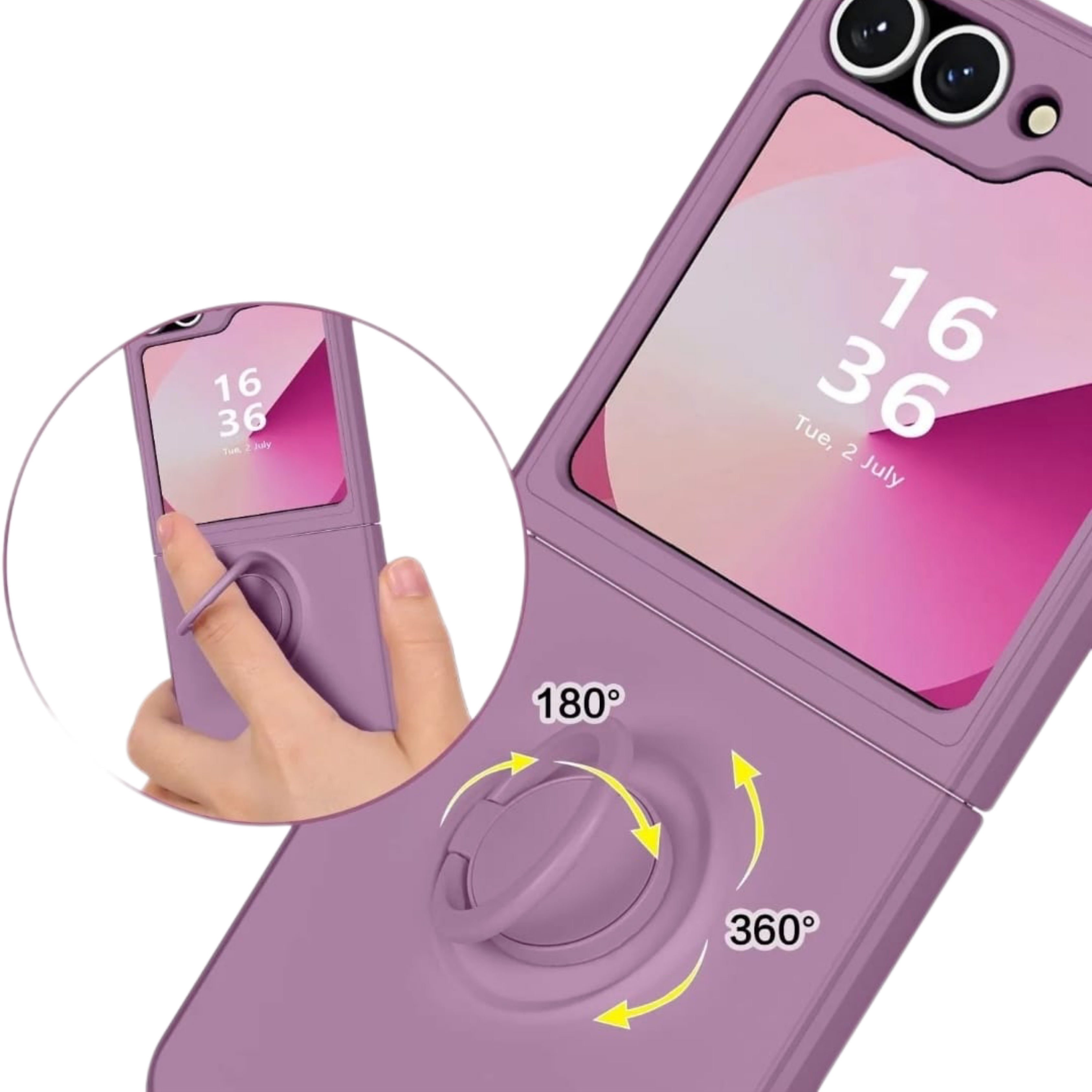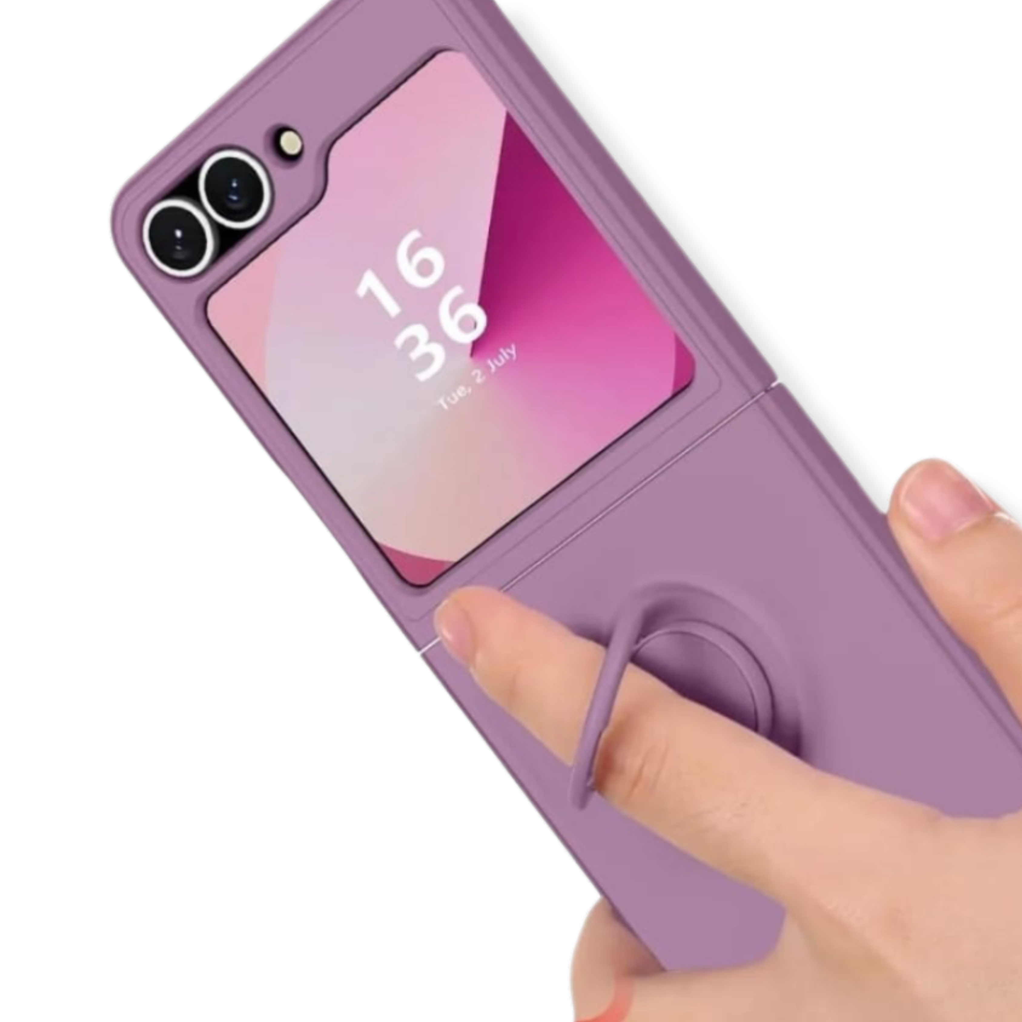 CASE FLIP SILICONA LIQUIDA COLOR VIOLETA CON SOPORTE DE ANILLO METÁLICO GIRATORIO. DISEÑO LISO CON INTERIOR SUAVE DE MICROFIBRA. ABSORCIÓN DE GOLPES.