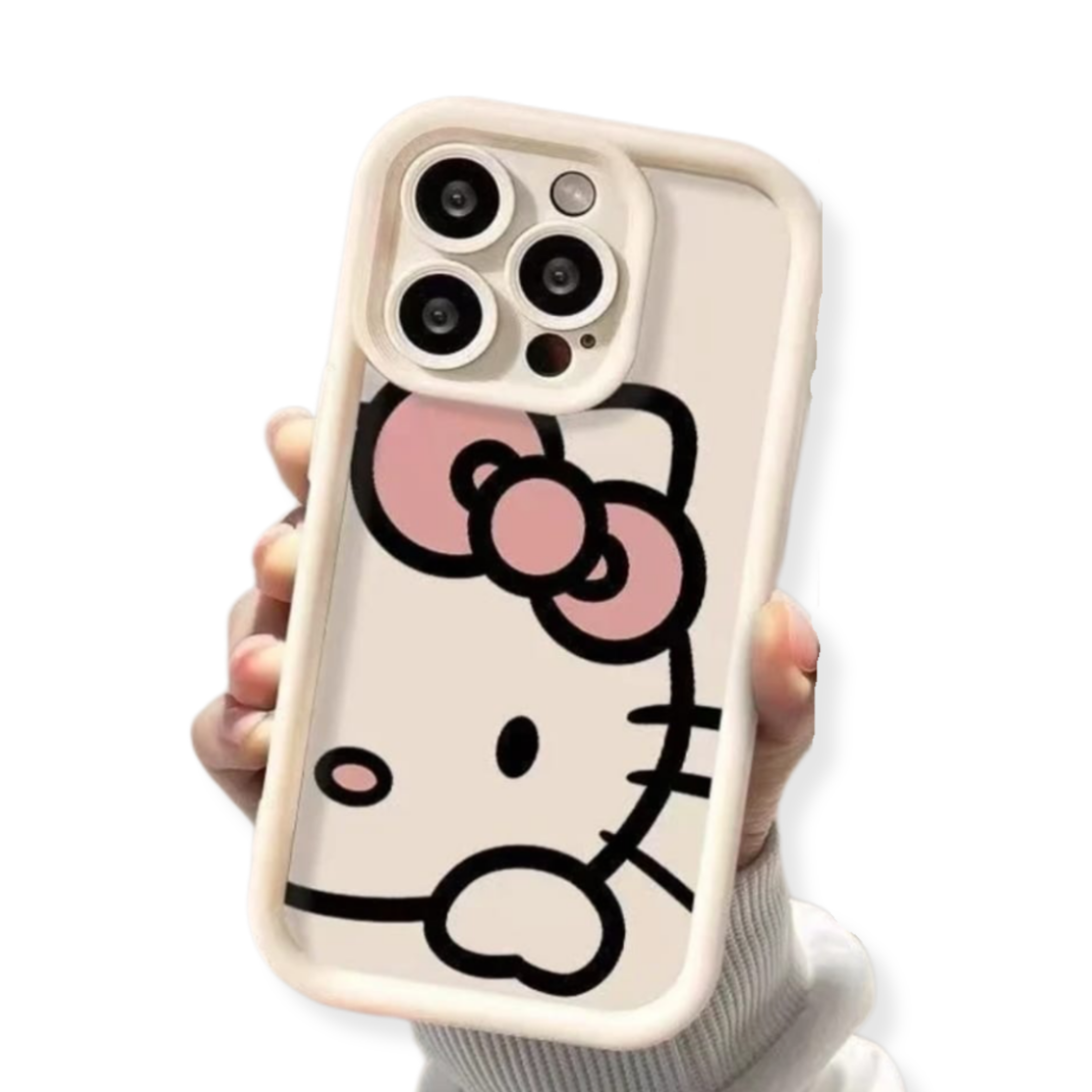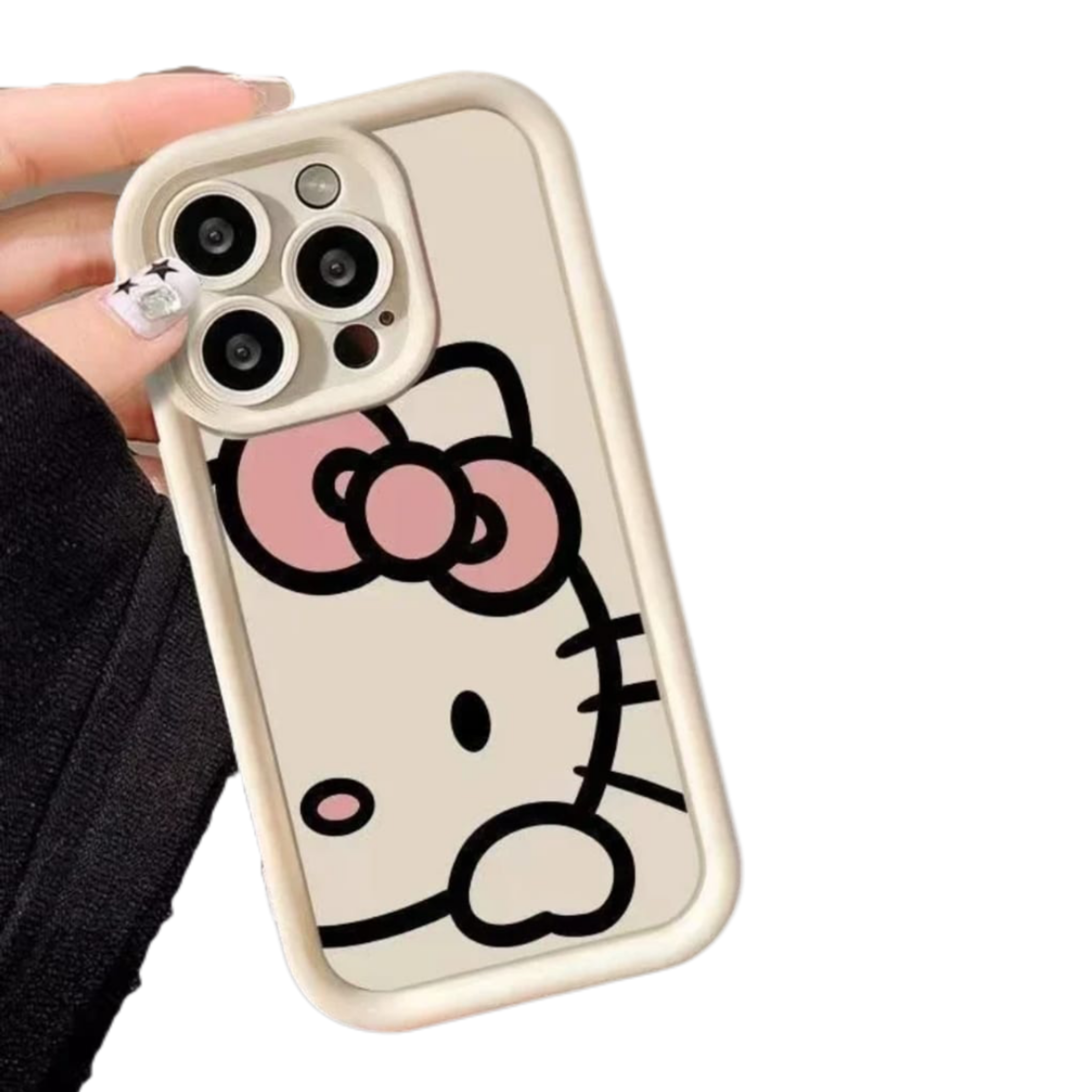 CASE HELLO KITTY ANTISHOCK COLOR CREMA CON BORDES REFORZADOS (PROTECCIÓN ANTI CAÍDA), Y PROTECCIÓN TOTAL DE ZONA DE CÁMARA.