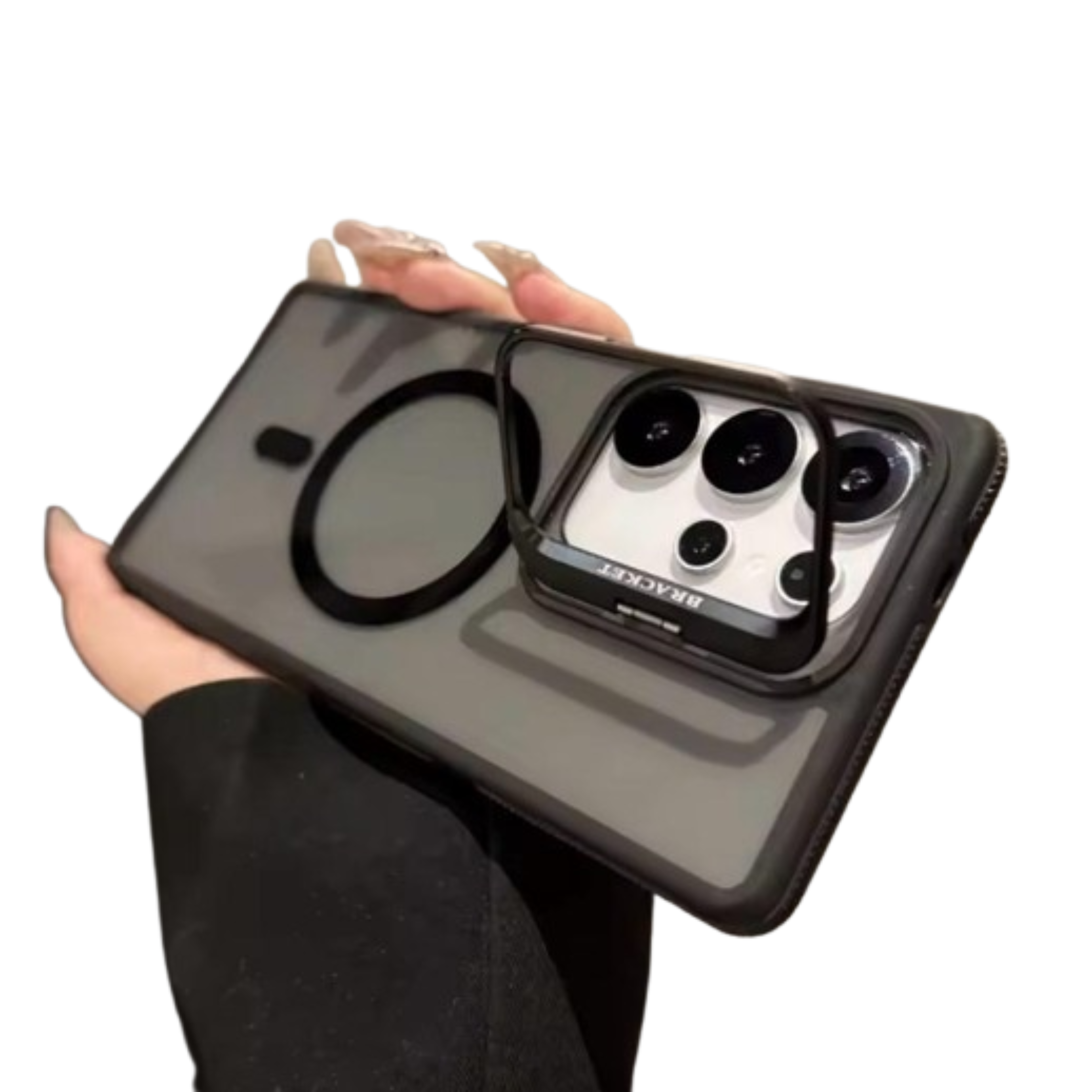 CASE NEGRO ANTISHOCK MATE CON DISEÑO LISO, BORDES REFORZADOS COLOR NEGRO, Y BORDE DE CÁMARA ESTILO SOPORTE DE CELULAR. CONTIENE ARO MAGNÉTICO COMPATIBLE CON CARGA INALÁMBRICA. MODELO ANTISHOCK, PROTECCIÓN ANTI CAIDA. COMPATIBLE CON MODELOS IPHONE.