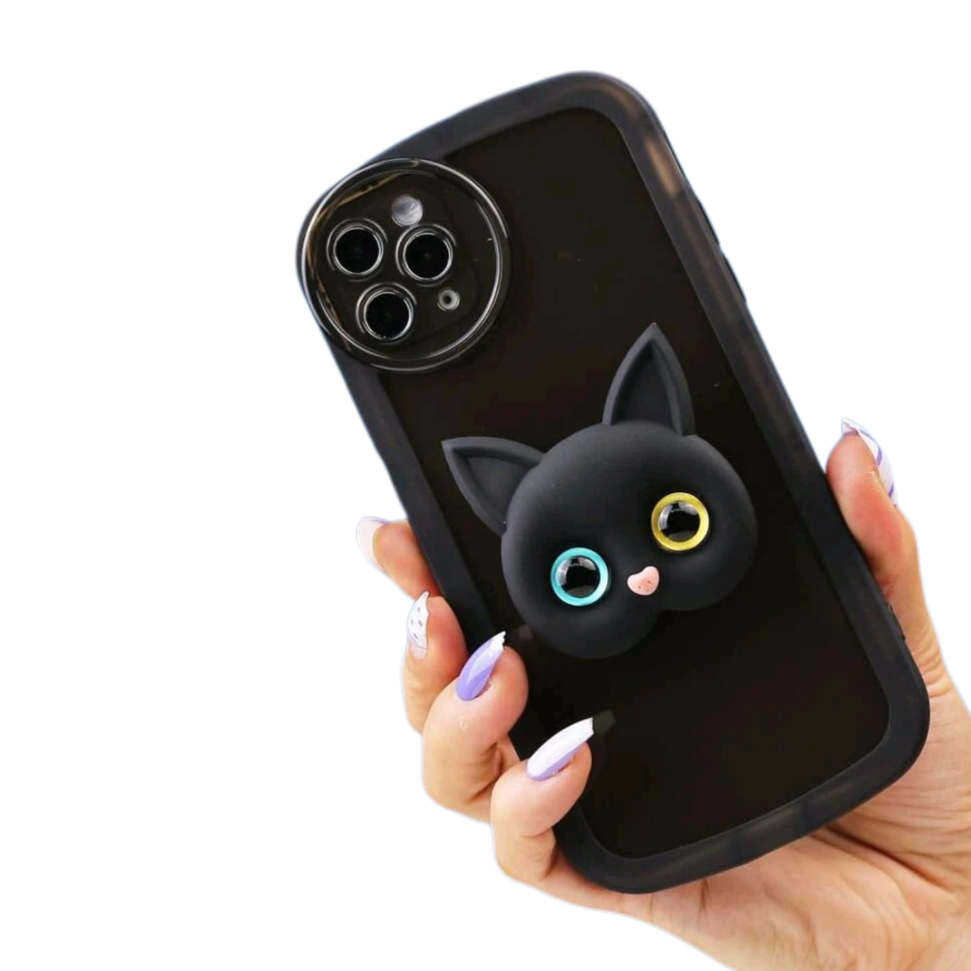 DISEÑO: BORDES NEGROS CON POP SOCKET DE DISEÑO DE GATO