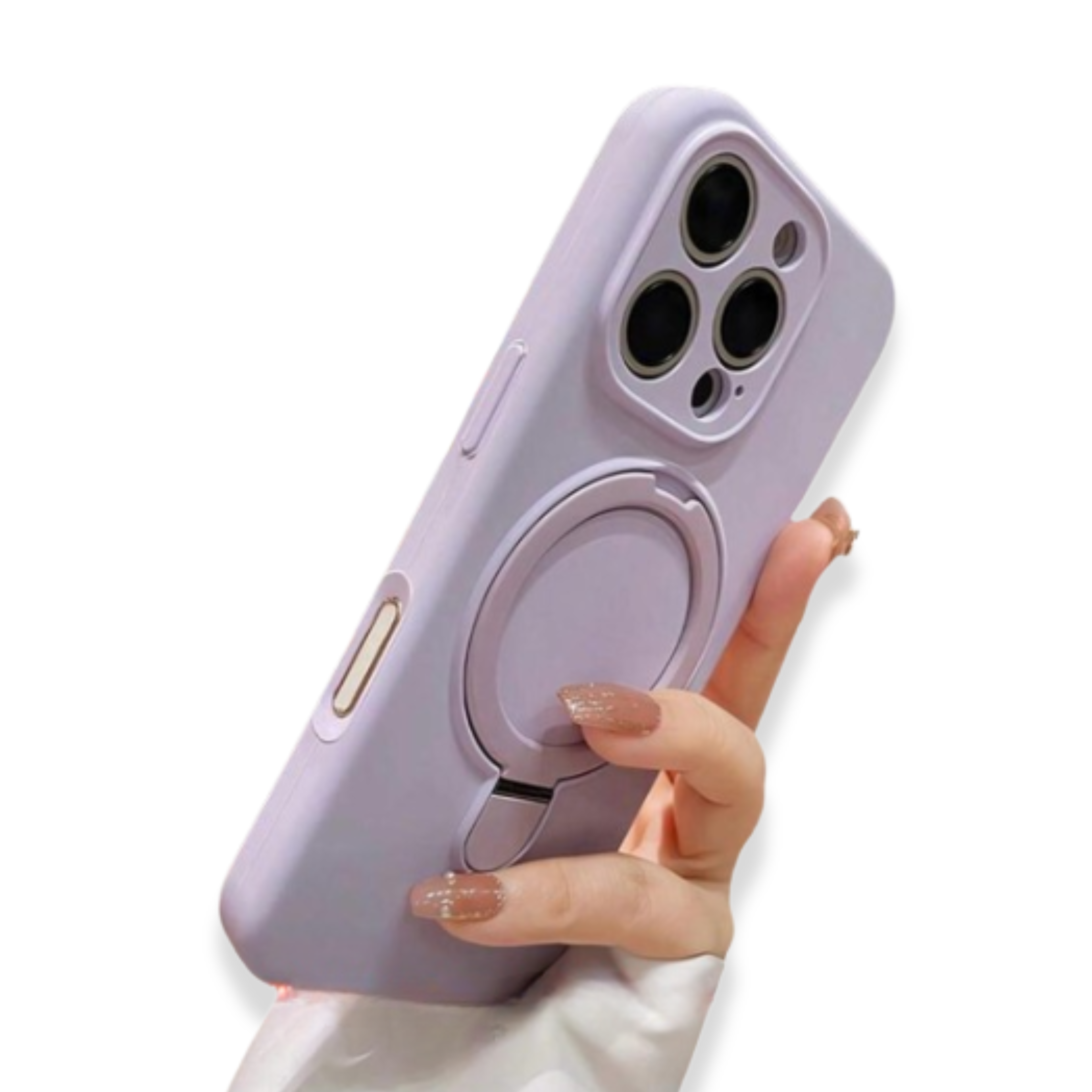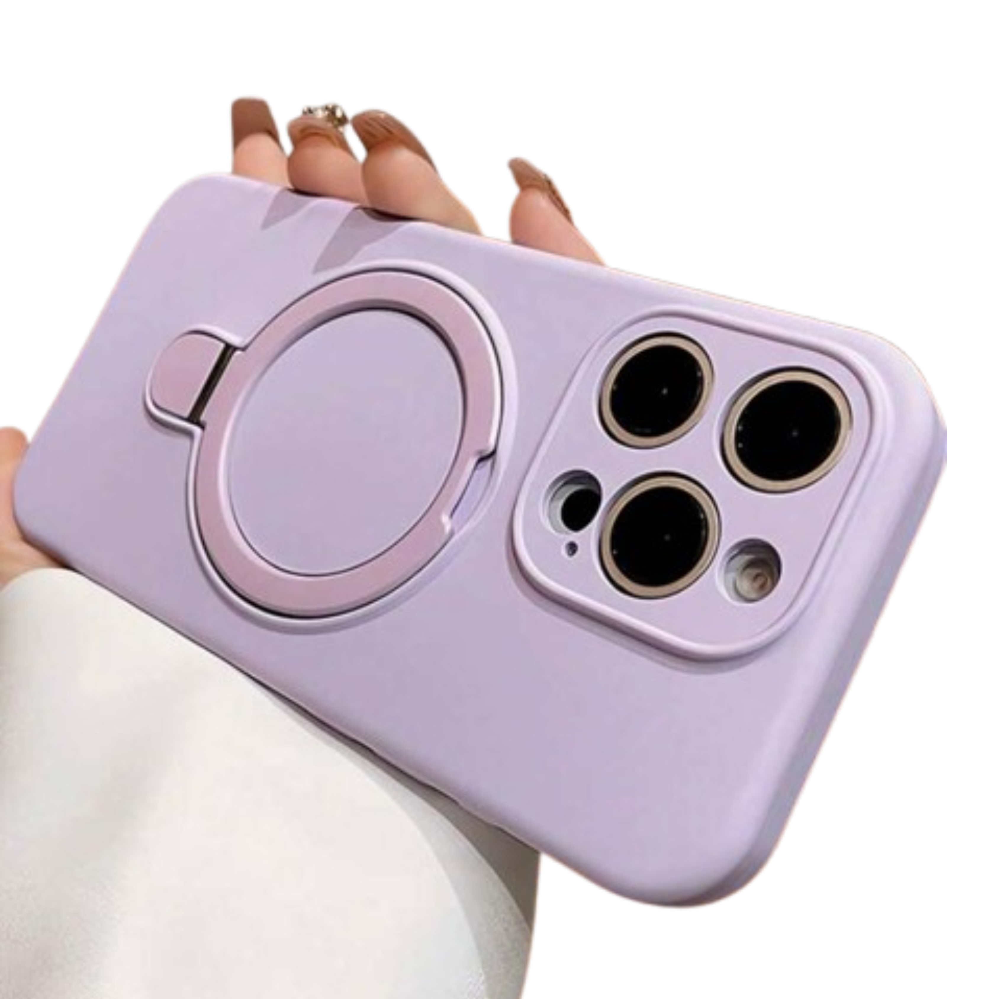 CASE SILICONA LIQUIDA COLOR LILA CON SOPORTE PARA CELULAR Y ARO MAGNÉTICO COMPATIBLE CON CARGA INALÁMBRICA. DISEÑO LISO CON INTERIOR SUAVE DE MICROFIBRA. CASE ANTISHOCK Y PROTECCIÓN A PRUEBA DE GOLPES.