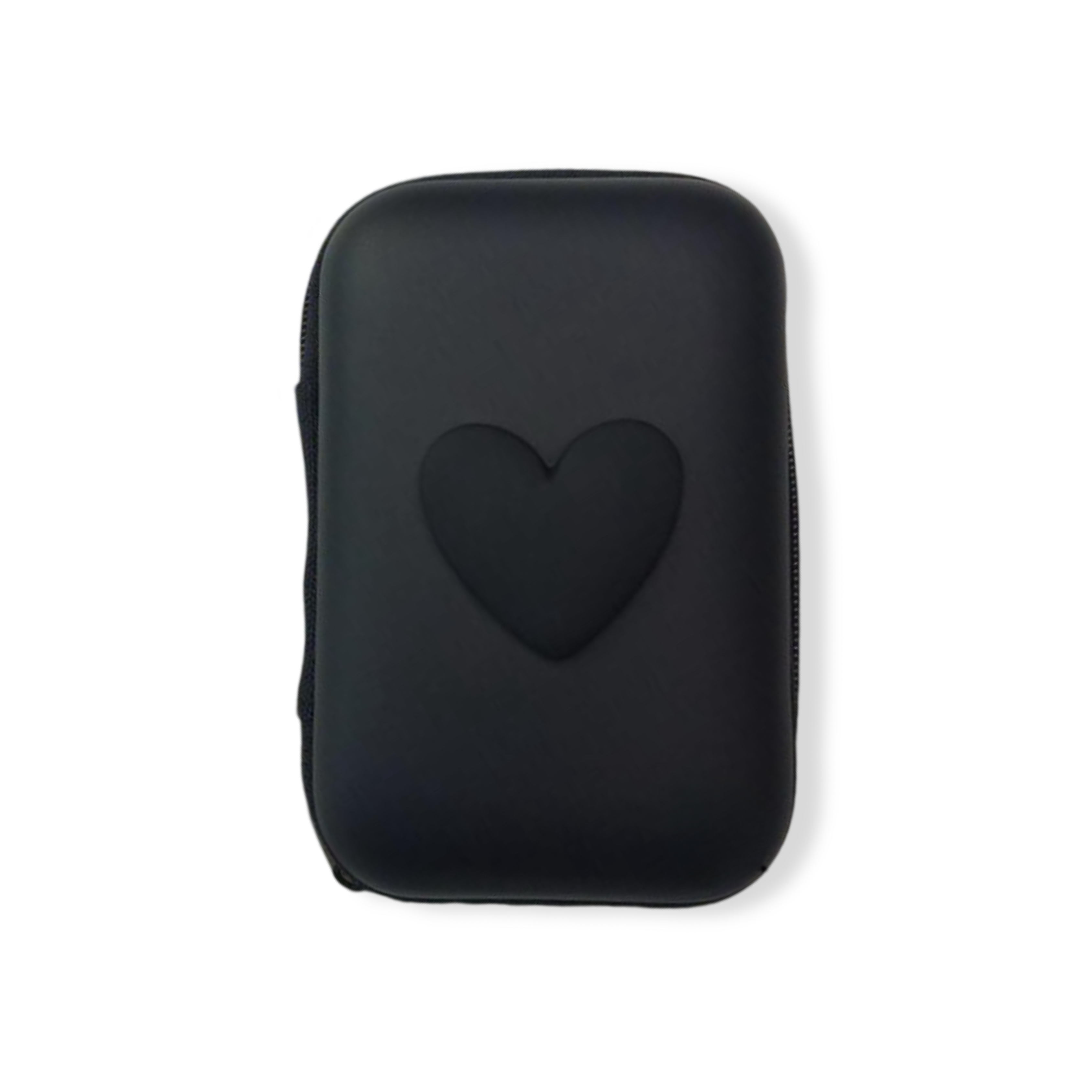 ESTUCHE DE CARGADOR COLOR NEGRO CON DISEÑO DE CORAZÓN NEGRO EN RELIEVE. COMPATIBLE CON CUALQUIER MODELO DE CARGADOR.
